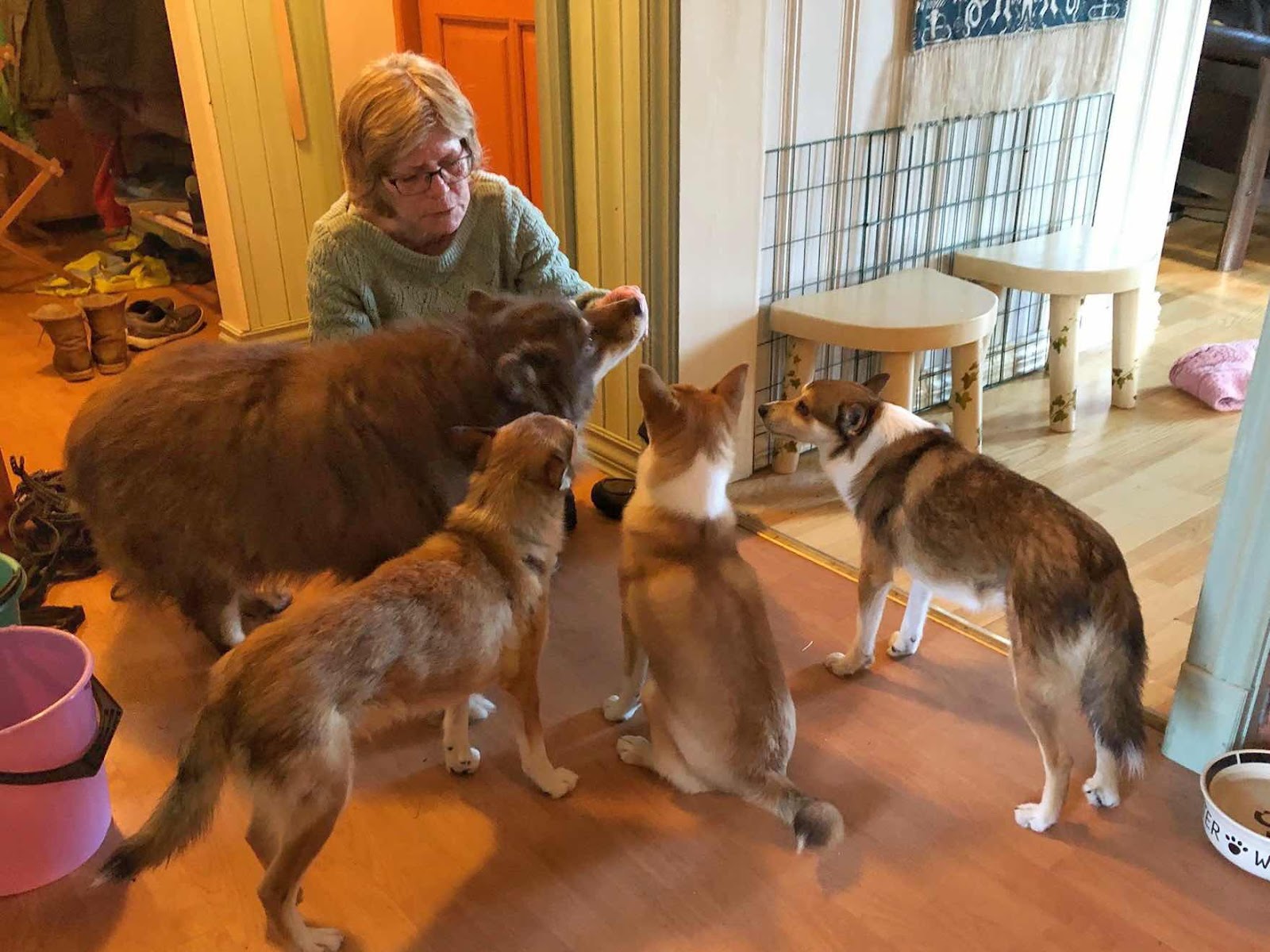 Tove er like glad i hunder, og ho har faktisk minst like mye godt i lommene sine som Petter!