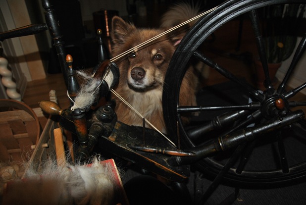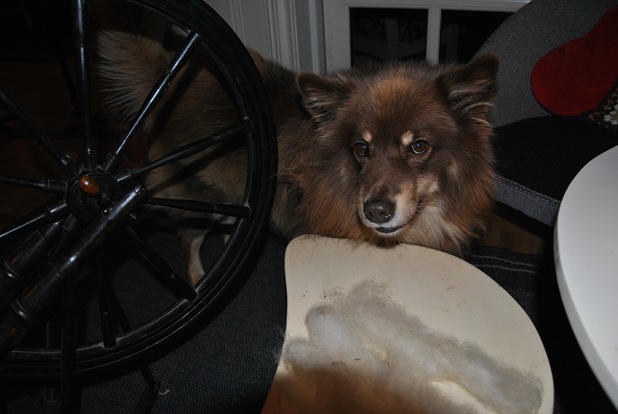 Så kjekt det ser ut, med spinningen og det du holder på med! :D Det blir spennende å se hva du får til å lage av det etter hvert! Både Nalle og Jaco så veldig nysgjerrige ut! ;)